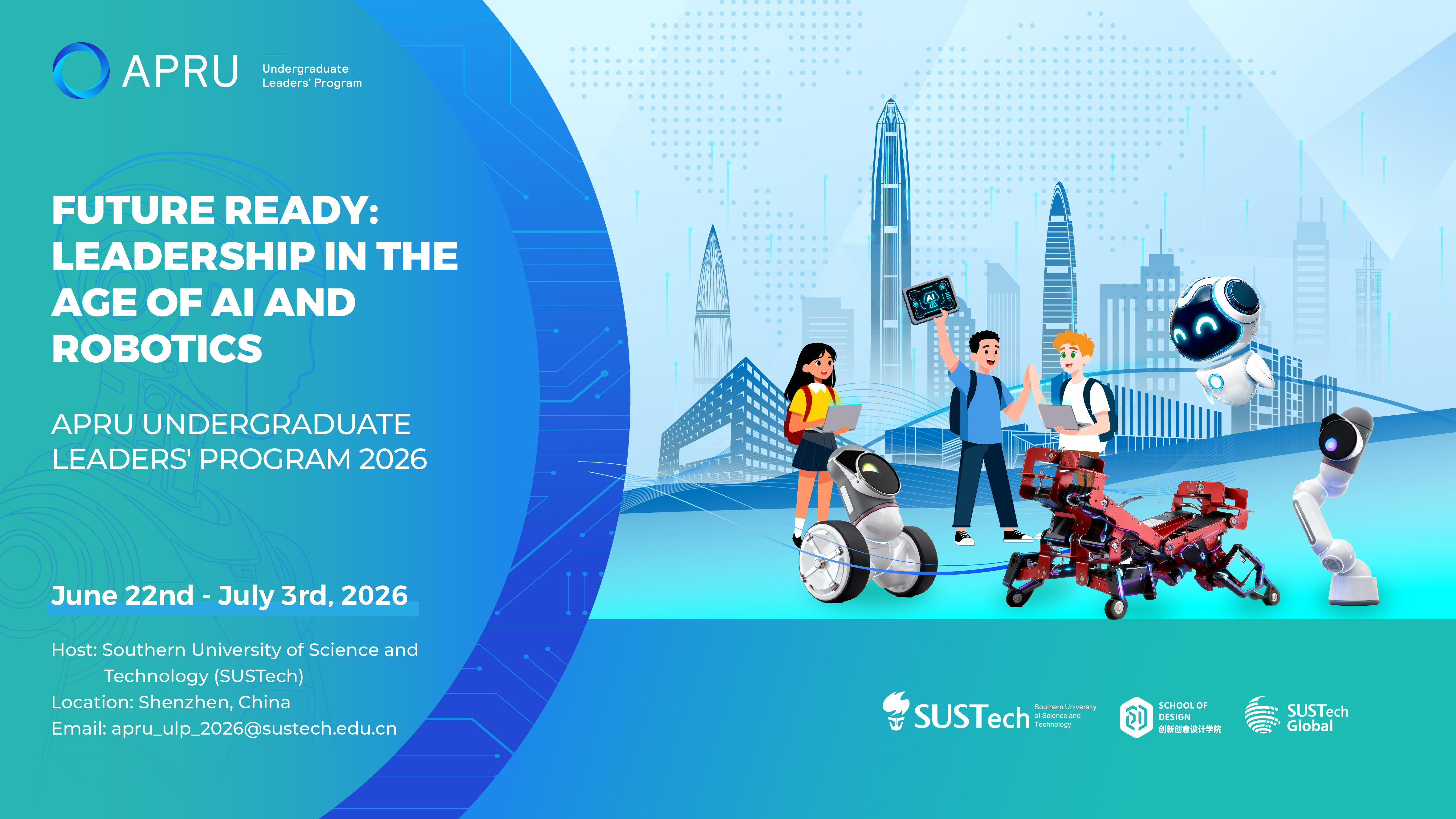 Southern University of Science and Technology (SUSTech) is proud to host the Association of Pacific Rim Universities (APRU) Undergraduate Leaders' Program (ULP) from June 22 to July 03, 2026. Themed “Future Ready: Leadership in the Age of AI and Robotics”, the program invites future leaders from across the Pacific Rim to explore how social robotics and embedded AI will transform human life, industry, and society.